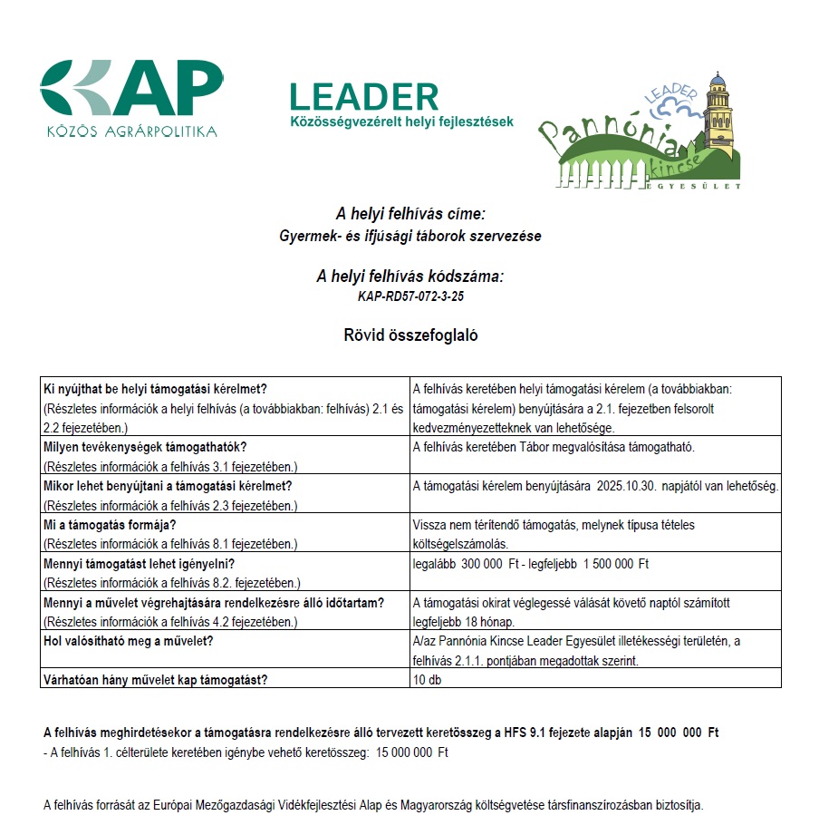 Felhívással kapcsolatban tájékoztató fórumokat tartunk, melyek időpontjáról és helyszínéről hamarosan tájékoztatást adunk!